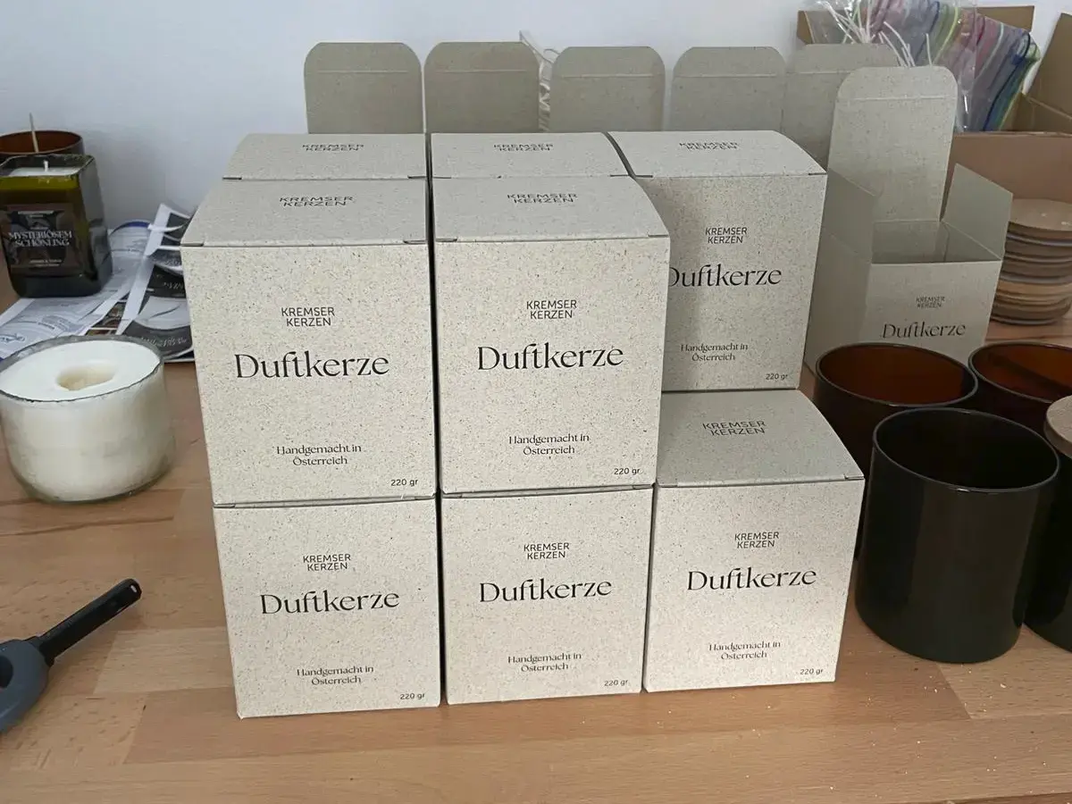 Die Idee, eigene Duftkerzen zu kreieren, entstand in einer gemeinsamen Bastelsession in Patricks Garage. Mit ätherischem Lavendelöl und einem alten Recyclingglas entstand die erste Kremser Kerze. Das überzeugende Ergebnis führte zu einer tiefen Überlegung: Warum nicht mehr daraus machen?